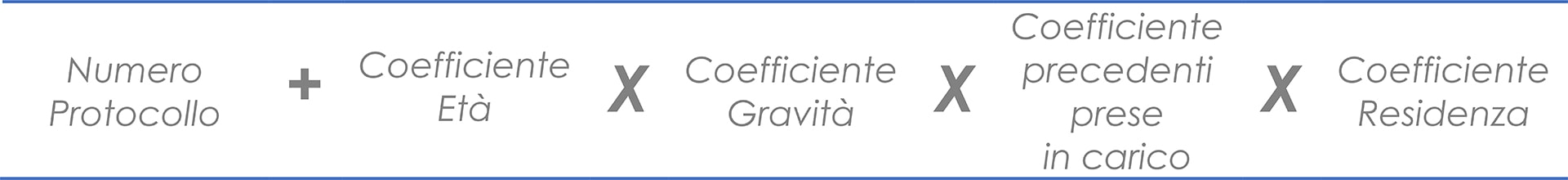 - Il coefficiente per precedenti prese in carico prevede una priorità più alta per tutti coloro abbiano già usufruito in passato del medesimo servizio e dunque viene attribuito: